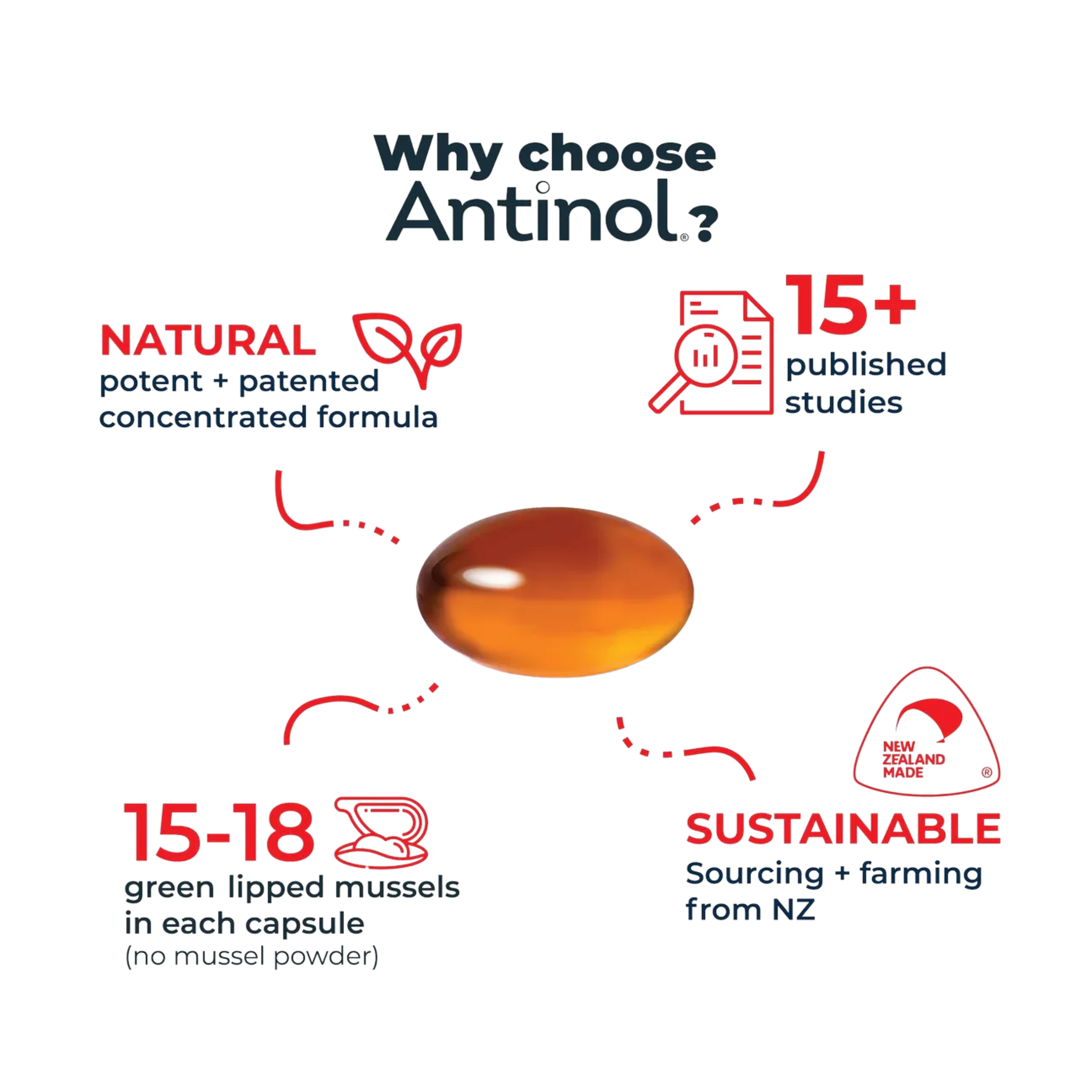 Antinol® supports joint health by harnessing the power of Green-Lipped Mussel (GLM) extract and Omega-3 fatty acids, which act as natural anti-inflammatories. These ingredients reduce inflammation, promote cartilage health, and ease joint discomfort, helping your pet stay active.